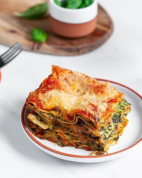 Vegetarische Spinat-Gemüse-Lasagne mit Tomatensoße